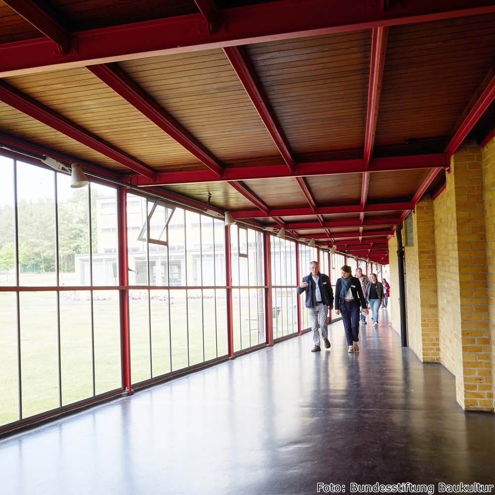 Im letzten Schritt übertragen die Schülerinnen und Schüler ihre Erkenntnisse in einen praktischen Modellbau: ihre Turnhalle der Zukunft. Sie suchen nach kreativen Lösungen für einen Umbau der eigenen Schul-Turnhalle, bedenken dabei unter anderem Ästhetik, Grün- und Wasserflächen, Barrierefreiheit, Ressourcen- und Energieschonung, multiple Nutzungsmöglichkeiten sowie die Einbindung des regionalen Handwerks. Für die Modellanfertigung recherchieren sie im Baukulturbericht und messen im Anschluss die eigene Turnhalle aus, rechnen in verschiedene Maßstäbe um, skizzieren, entwerfen und gestalten letztlich ihr Modell. Die Ergebnisse dieser Unterrichtseinheit können in Form einer großen Ausstellung präsentiert werden.